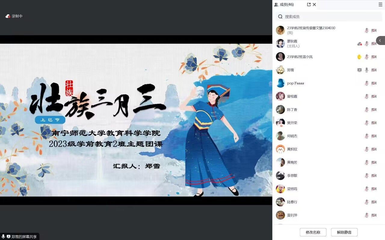 在活动中,我们采取了线上线下结合来推动活动的深入开展。我院利用易班平台,开展“浓情三月三,悠悠壮乡情”网上专题活动,收集学生心目中“我”对壮族三月三的习俗民风以及美食的了解与看法,将随手拍、随处看的图片及感悟上传至易班易喵喵。各班进行了传播壮族三月三文化的主题班会活动,让团员们围绕民族文化主题展开交流,使同学们对民族文化的内涵和重要性有了更加深入的了解。此外,各班团干还撰写了活动总结,让团员们更加深入地了解民族文化,增强了他们的民族团结意识。