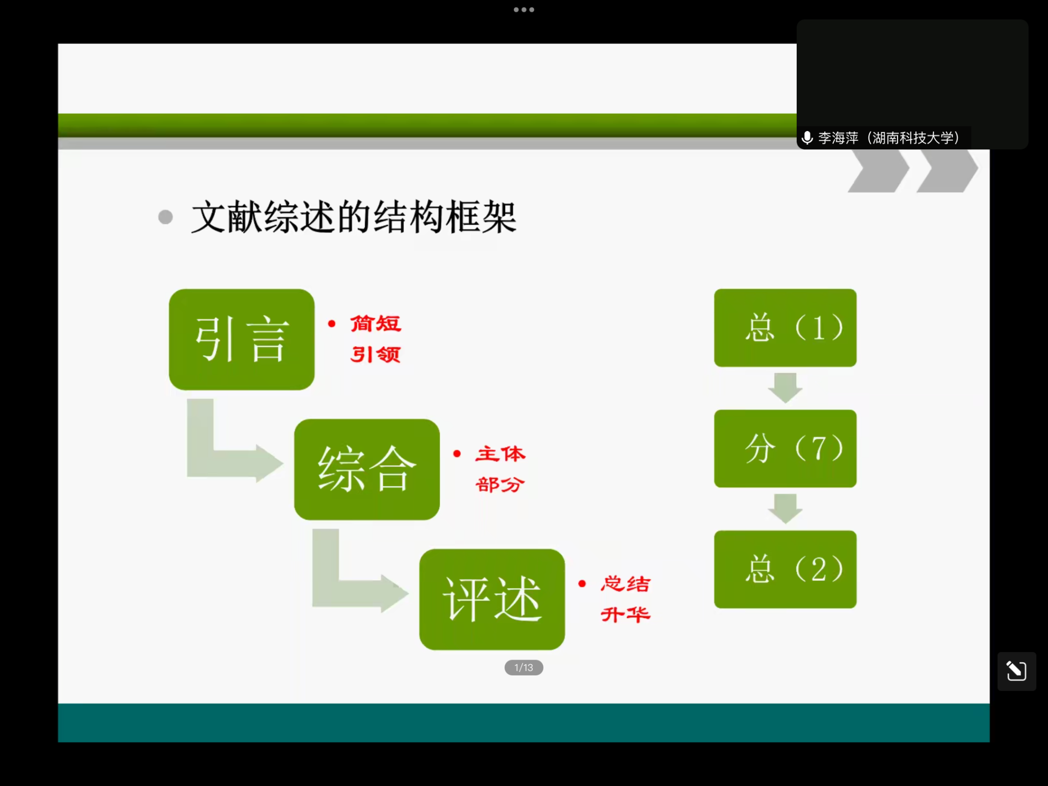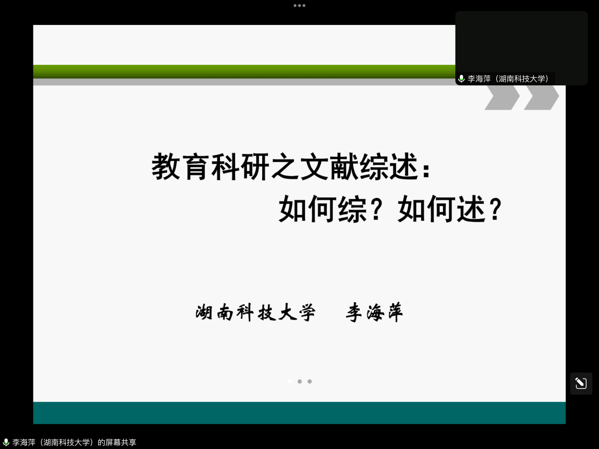 李海萍教授围绕全国教育科学规划课题、教育部人文社科项目、省级科学研究项目的申报书中的学术史梳理部分讲解文献综述的共同特点和要求。他指出文献综述具有专业性、学术性和研究性,就文献综述的重要性、查找文献综述的渠道、如何整理和阅读文献综述、如何撰写文献综述等方面展开深入的指导,强调既要立足于已有的研究,也要在此基础上发现问题并提出自己的分析和见解。最后,李教授结合自身丰富的申报经验,就拟申报国家级课题教师的选题进行了详细且有针对性的指导,提出了宝贵的修改建议。