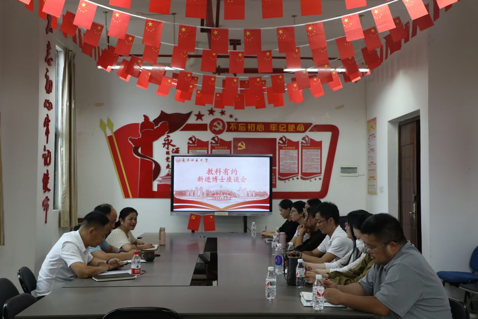 首先,学院党委庞芳书记发言。庞芳书记代表学院对新引进的8位博士表示热烈的欢迎,欢迎他们加入温暖的南宁师大教科大家庭,他们的到来为学院的发展增添新鲜的活力。同时,也希望他们在今后的工作、生活中遇到困难能及时反馈,学院将尽力解决。接着,徐延宇副院长针对年度科研项目的申报的进行耐心的指导,鼓励大家积极参加国家自然和社科项目申报辅导讲座,学院努力为大家的申报工作提供有力支持。最后,大家分别交流了个人到岗后的教学、科研等方面的情况,对博士们提出的意见和建议,与会人员进行耐心解答。