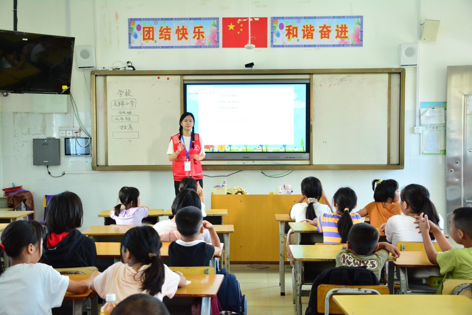 下午,支教组成员们开展了板报绘制工作,对两个班级的黑板进行创作,运用色彩与图案,勾勒出一幅幅充满希望的画面,不仅美化了教室环境,更激发了学生们的学习热情。