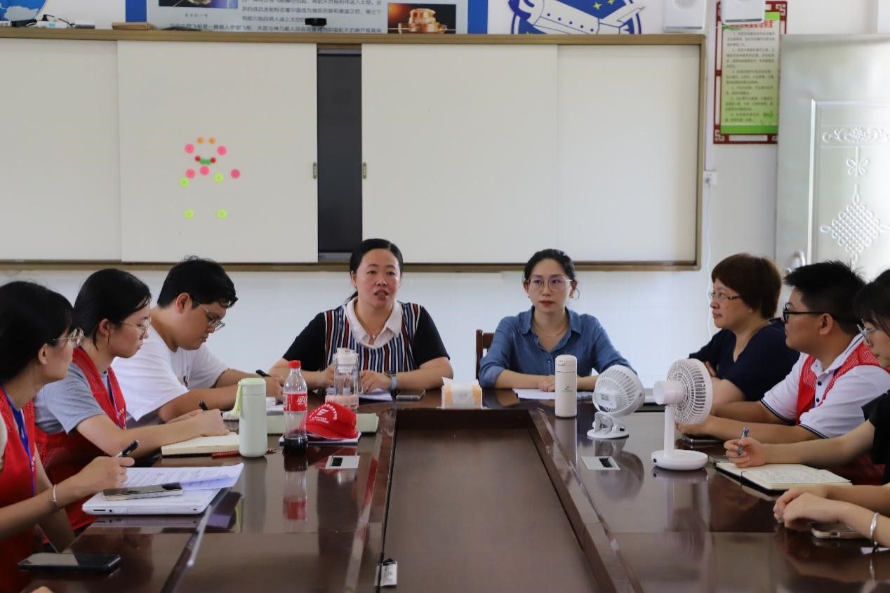 7月10日,BWIN必赢党委副书记谢珊、实践队指导老师蒋欢和辅导员郭恒、梁精泉一行人来到了马蹄小学,看望慰问学院“心手相牵筑梦行,振兴乡村共发展”暑期“三下乡”社会实践服务团队员,旁听了心理团辅特色活动课程,随后与实践队员们进行了座谈交流。