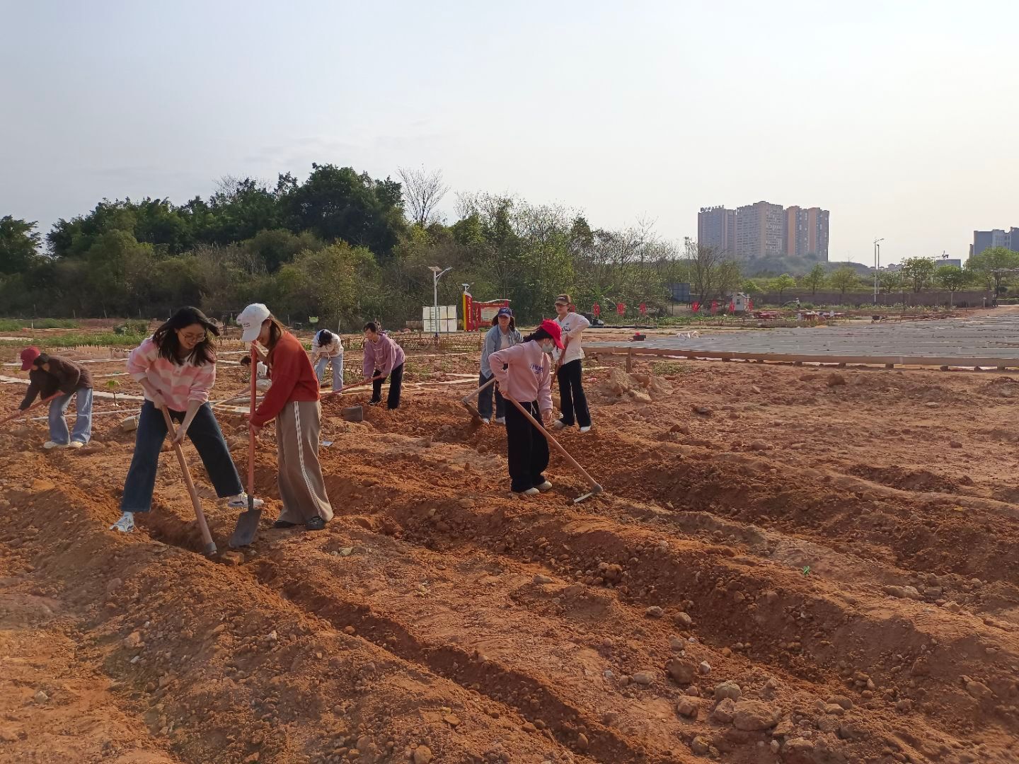 劳动实践基地的建立不仅是支部党建工作的一次创新尝试,更是党员密切联系群众、服务基层的重要平台。通过亲身参与劳动,党员们能够更好地理解“幸福是奋斗出来的”深刻内涵,进一步增强责任感和使命感。大家分工明确,有的翻地、有的播种、有的浇水,田间地头一片忙碌景象。每个人的脸上都洋溢着笑容,享受着劳动带来的成就感。