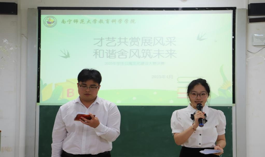 本次比赛晋级决赛的宿舍按抽签顺序依次上台,进行宿舍风采展示、才艺展示、互动问答三个环节。在宿舍风采展示环节,各宿舍围绕宿舍成员介绍、生活环境、日常相处、宿舍氛围、共同学习、参加活动、宿舍文化、未来展望等方面展开介绍。每个宿舍都充分展现了自身特色,宿舍氛围温馨和谐,卫生环境干净整洁。才艺展示环节更是精彩不断,部分宿舍选择歌唱表演,也有部分宿舍别出心裁,带来宿舍生活情景展示、手语表演等节目,最终8B-616宿舍凭借出色表现荣获第一名。郭恒老师对比赛进行了总结,希望大家能分享本次活动,让更多同学参与到宿舍文化建设中来。