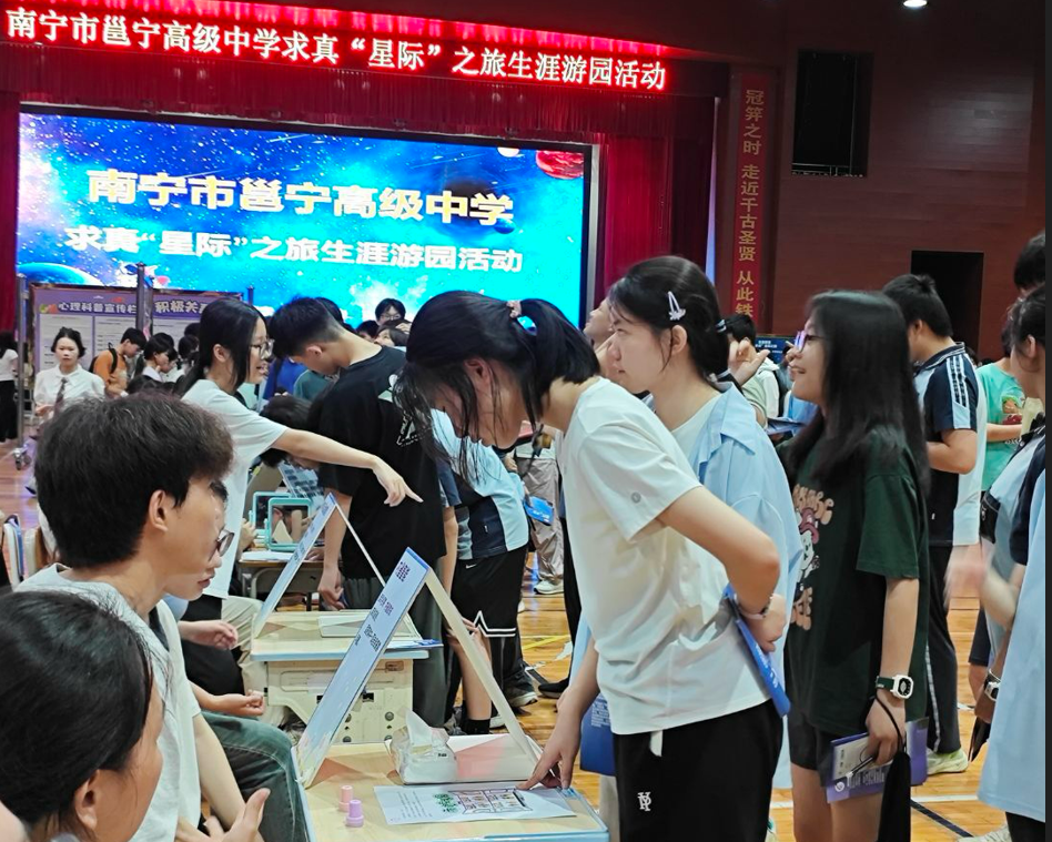 5 月 16 日,BWIN必赢,BWIN必赢 23 级应用心理专业学生与心理健康协会成员作为志愿者参与到南宁市邕宁高级中学“携手共进,心向未来——生涯探索的求真星际之旅”主题游园活动,进行职业体验。