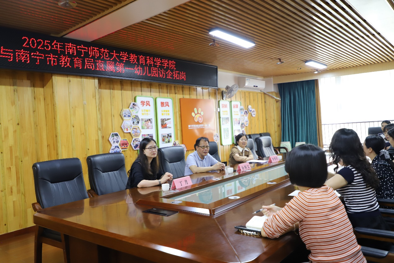 在五象一幼和南宁市教育局直属第一幼儿园的授牌仪式上,余书记一行分别与两所幼儿园园长及教师代表进行了深入交流。双方明确将以基地为纽带,通过实习实践、课题研究、师资培训等合作形式,实现高校理论资源与幼儿园实践资源的双向赋能。