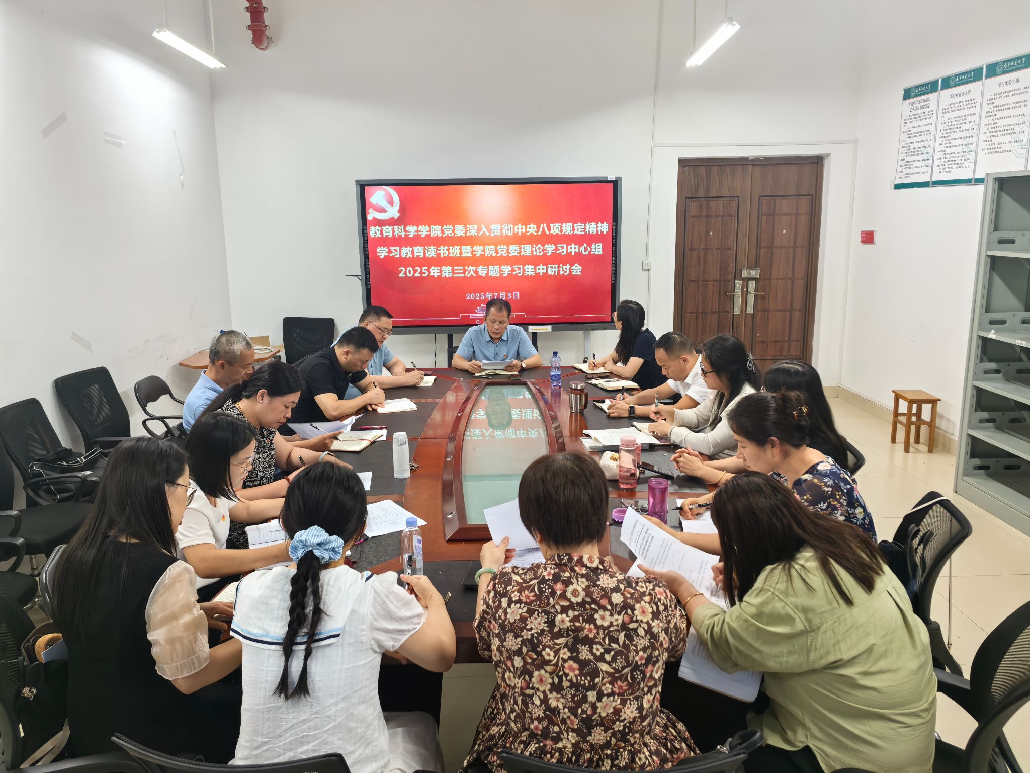 7月3日,BWIN必赢党委在五合校区理综楼1004-1会议室召开深入贯彻中央八项规定精神学习教育读书班暨学院党委理论学习中心组2025年第三次专题学习集中研讨会。学院党委书记余朝文主持会议,学院党委理论学习中心组成员参加会议,学院纪委委员、各支部书记列席会议。